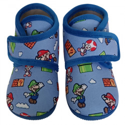 VULCA-BICHA ZAPATILLAS DE CASA CERRADAS VELCRO "SUPER MARIO" NIÑOS 053 AZULON VUL132