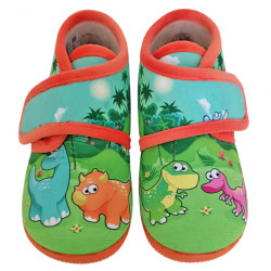 VULCA-BICHA ZAPATILLAS DE CASA CERRADAS VELCRO "DINOSAURIOS" NIÑOS 1063 VERDE / NARANJA VUL141