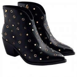 GIOSEPPO MUSKEGON BOTINES COWBOY EFECTO PIEL TACHAS Y OLLADOS TACÓN PARA MUJER 76728 NEGRO GIO437